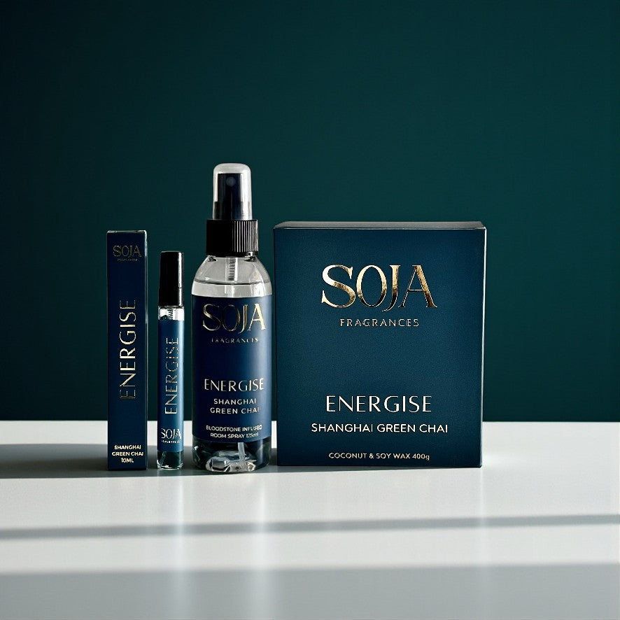 Need a mental reset or burst of energy? Energise is your go-to for clearing the fog and creating momentum. Fragranced with a bold blend of chai spices, green tea, and zesty citrus, this scent fills your home with warmth and fresh clarity.