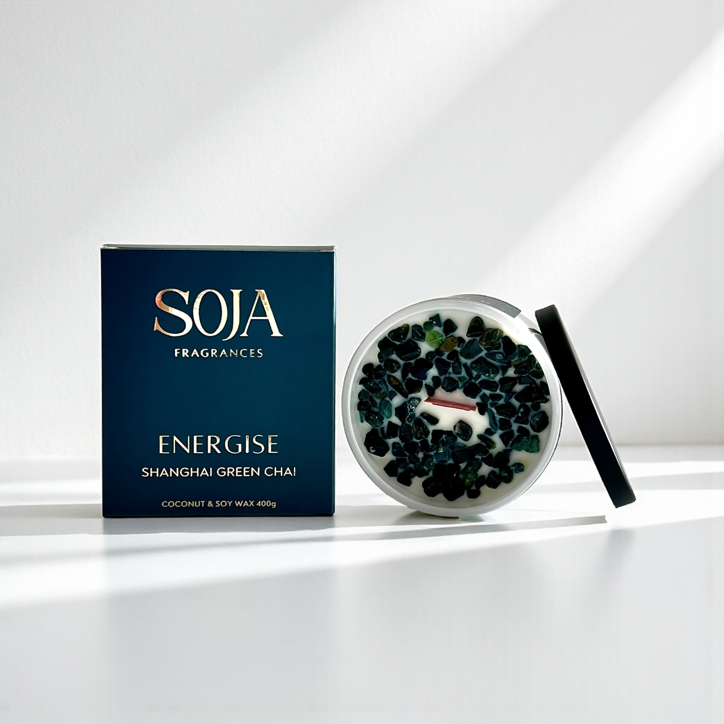 Energise - Bloodstone Crystal-Infused Candle | Shanghai Green Chai
