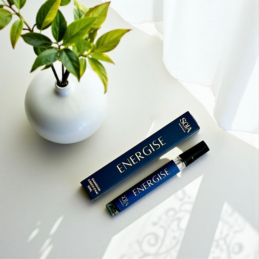 A vibrant, citrus-forward blend to lift your energy and spark motivation. Our Energise Mini Room Spray is infused with Citrine — the crystal of joy and abundance — and fragranced with Shanghai Green Chai, a fresh mix of citrus, herbs, and green tea.