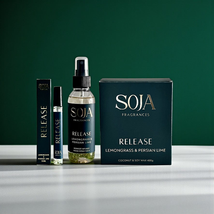 Hand-poured in Melbourne with coconut soy wax and a soft-crackling wood wick, Release is your go-to for lightening the mood and clearing the air, inside and out.