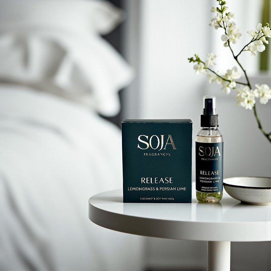 Fresh, bright, and emotionally cleansing — Release is designed to help you let go of stress and make space for calm clarity. The crisp blend of lemongrass, lime zest, and rosewood refreshes both the room and the mind.