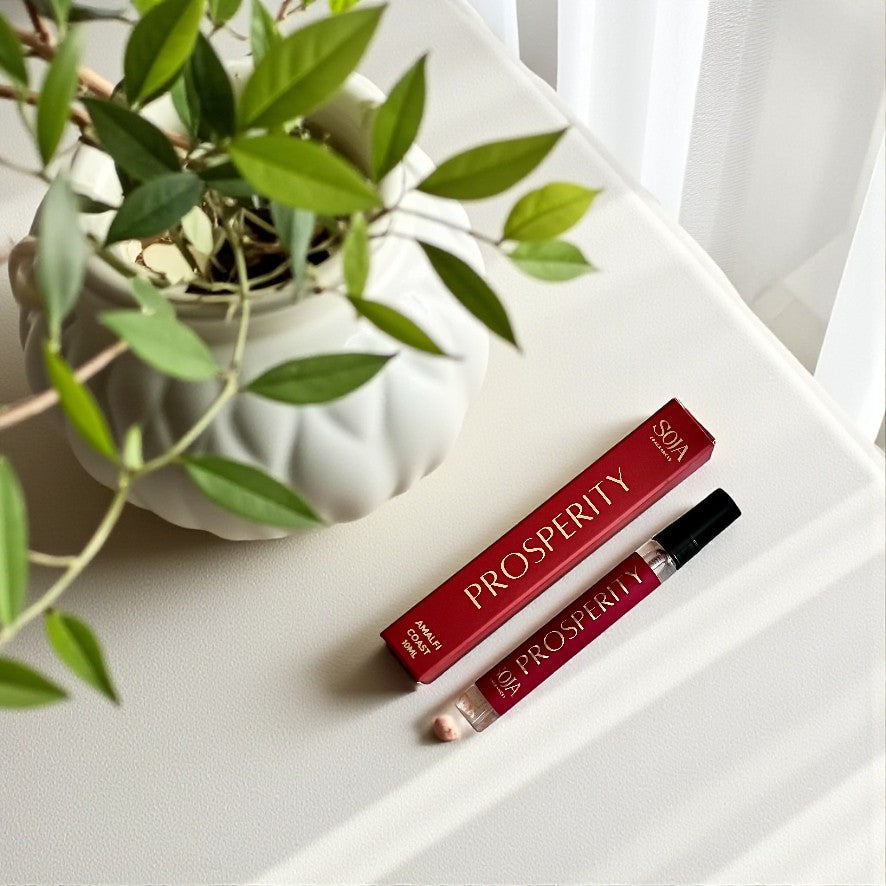 A fresh, citrusy blend that captures the uplifting spirit of the coast. Our Prosperity Mini Room Spray pairs Sunstone — the crystal of luck and vitality — with the crisp, energising notes of Amalfi Coast.
