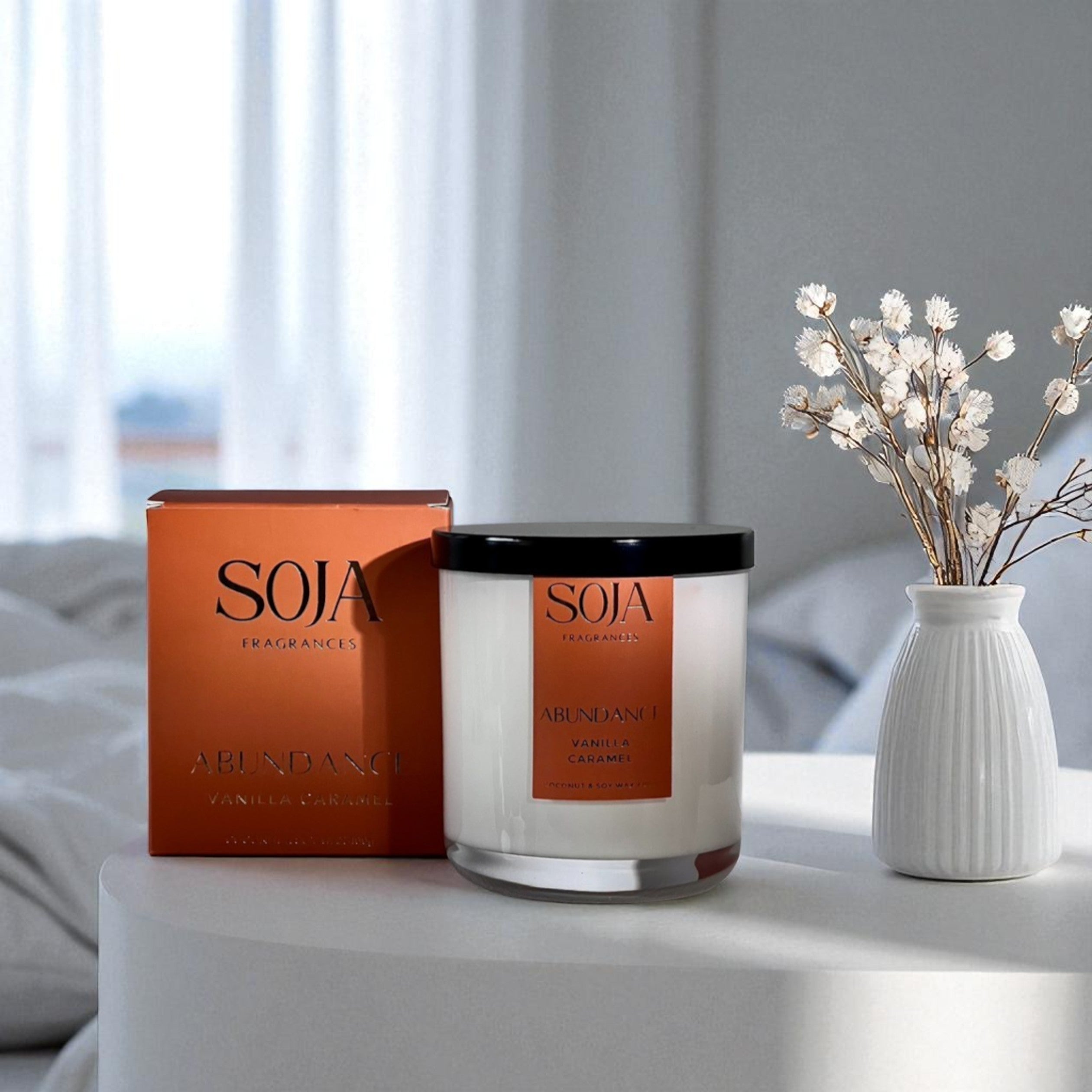 Crafted with clean-burning coconut soy wax and premium fragrance oils for a 70-hour burn, Abundance brings luxury and intention into your everyday moments.
