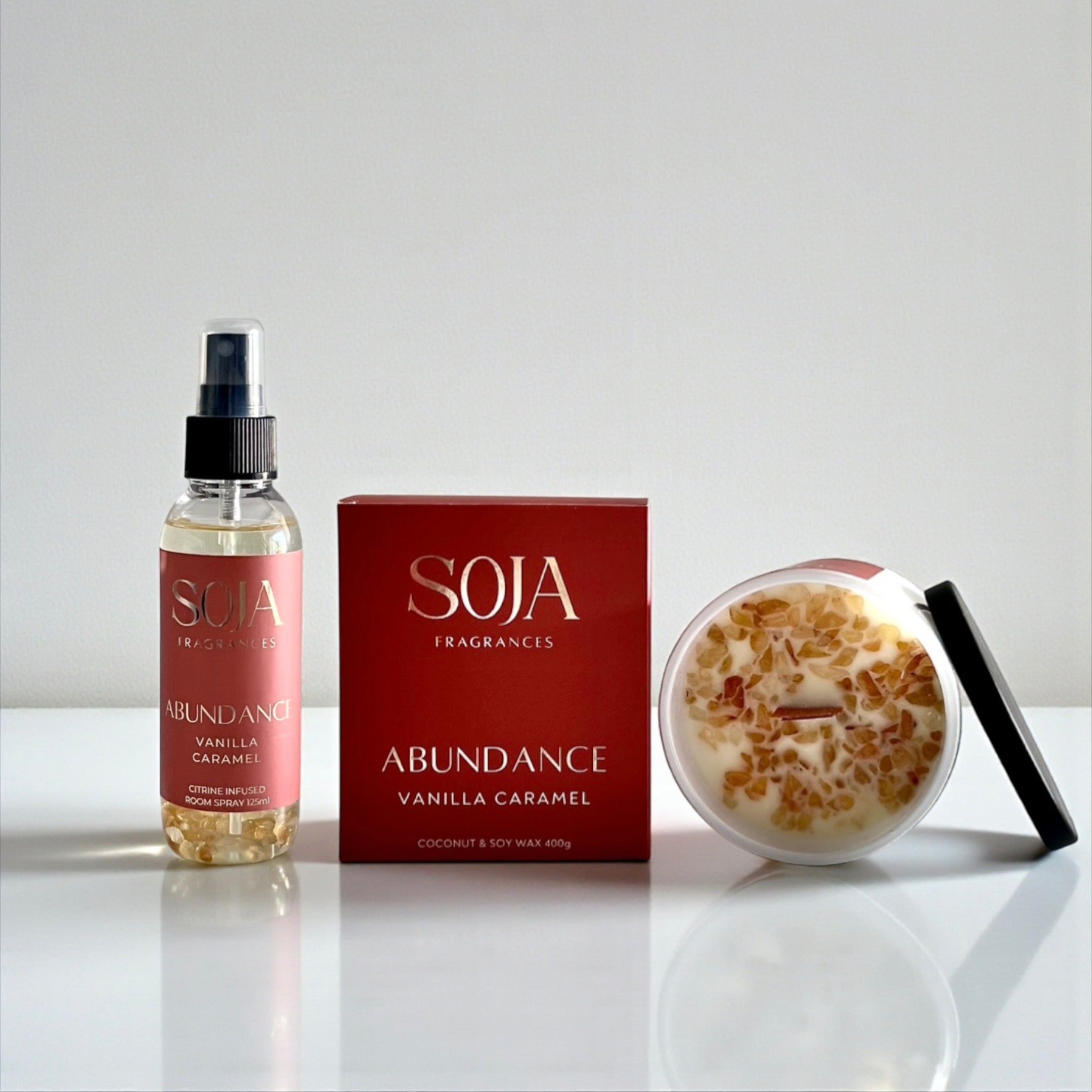 Abundance – Vanilla Caramel Candle & 125ml Room Spray Set