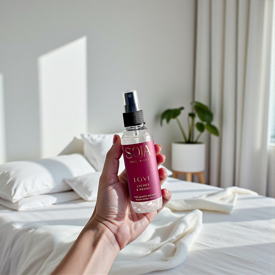Infused with natural rose quartz crystals traditionally linked to love and emotional calm.